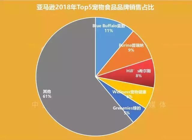 亚马逊去年卖了20亿美元宠物用品,宠物食品销售额达到了约10亿美元的销售额,较2017年增长20%,占据宠物总销售额的一半规模。