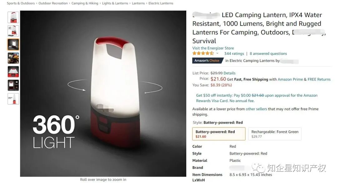 今天在浏览亚马逊的时候,看到一款户外野营灯,它是美国站的Amazon'sChoice 售价21.60美金,留评345颗星。