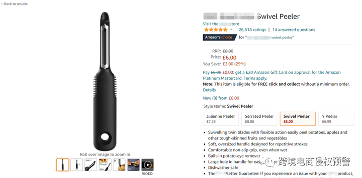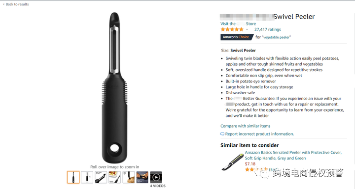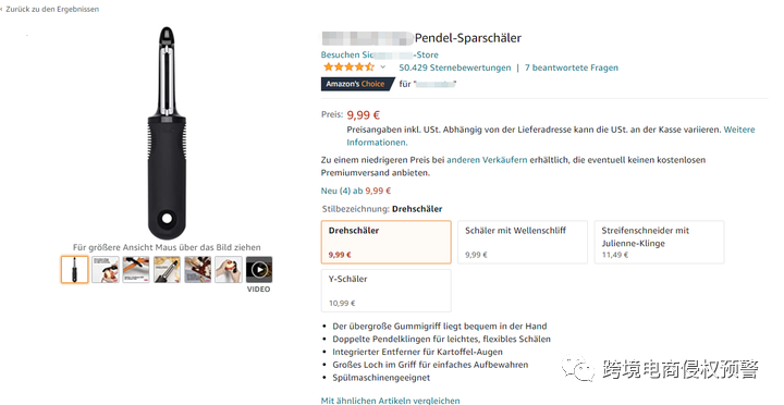 下面这款爆款旋转削皮器,目前在亚马逊美国站、英国站、德国站都是Amazon'sChoice,现有留评数高达27,417、26,618、50,429: