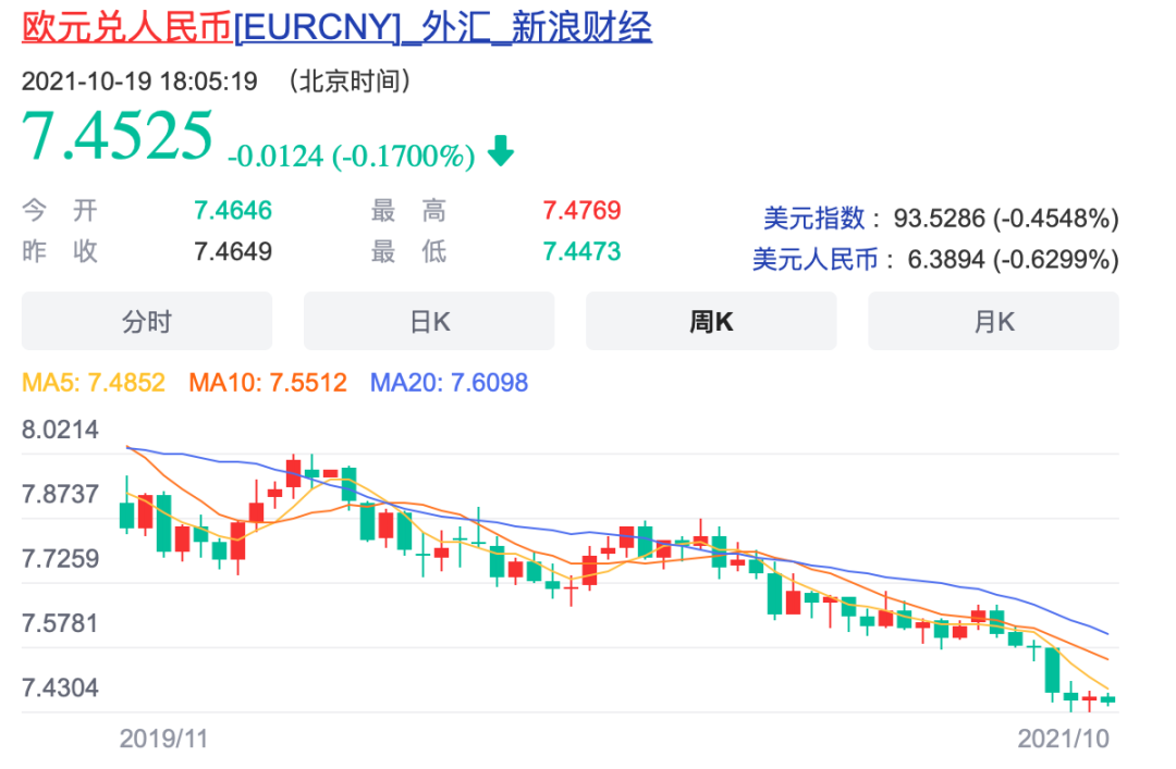 欧元趋势也不好,这个形势下去,估计很快也会跌破7.4的关口。