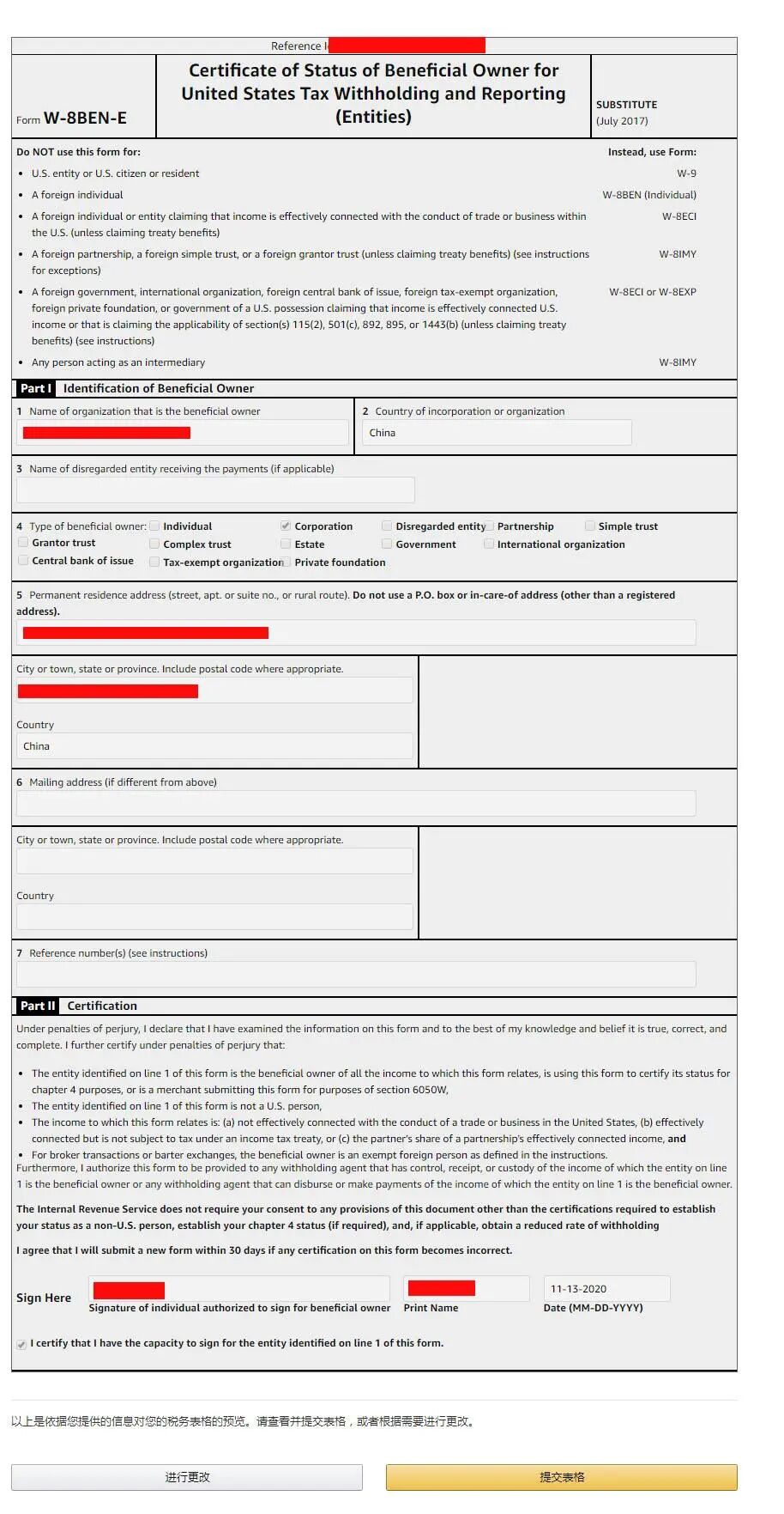 为了帮助到美国站的卖家了解如何更新W-8表格,小编做了一个指导的流程,希望能对您有所帮忙,步骤流程如下: