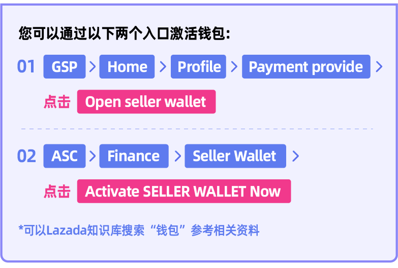 为了确保平台的收款、结算服务符合PSA合规标准(配合新加坡金管局出台的“支付服务法案”(Payment Services Act 2019,PSA)的要求),平台再次呼吁所有跨境中国商家朋友务必在2021年10月31号之前完成钱包的激活。若您未在规定时间内完成钱包激活,您从11月起的订单结算将受影响,无法收到平台打款。