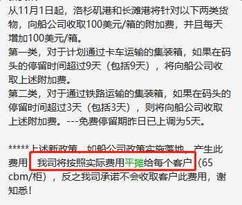 滞留罚款直接就针对了船公司有意堆积货柜的操作,但是能不能真的利好到我们卖家头上,让高昂的运费回归正常水平,还不好说。我已经看到有脸皮超厚的货代在要求客户平摊滞留罚款了。