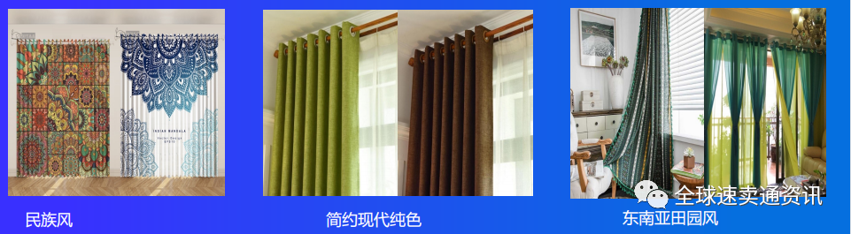 (1)窗帘素色款、民族、田园风格款式、遮光效果好