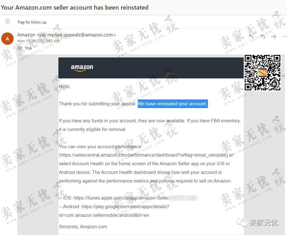 侵权扫号解封案例!现在侵权扫号可谓让人闻风丧胆,解封率极低,还经常一封拒死,这个卖家大佬来自山东烟台宁总,美国店铺侵权冻结,店铺也被拒死的状态,7月13日接手,经过不懈的努力,终于在今天解封。