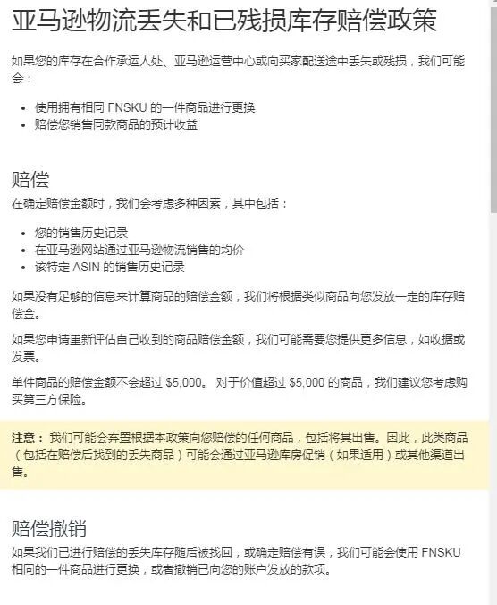 如果没有足够的信息的计算商品的赔偿金额,亚马逊将根据类似商品向卖家发放一定的库存赔偿金。