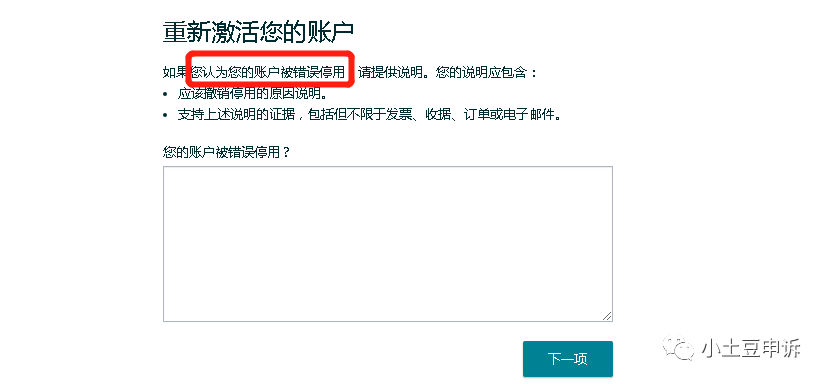 (错误停用,一个申诉框)