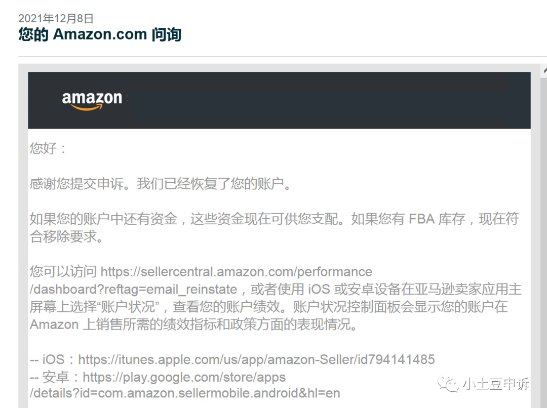 面对大量遭受这种难题的账号,我们小土豆申诉的技术团队也是做了非常多的探索和研究,对技术一次次升级改进。效果也是很明显的,这类案子从没有太多头绪,到第一个案子解封,再到多个案子解封。成功率在提升,时效在缩短,虽然比不上去年处理侵权的成功率和时效,但至少这类问题不是无解,卖家仍然是有很大概率能拿回账号和资金。