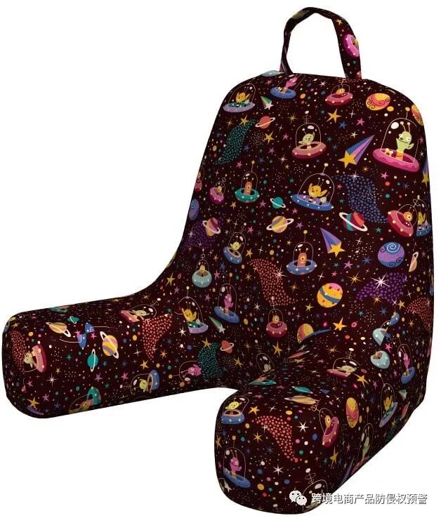 那么,既然这种素外观的【靠背枕头】有侵权风险,那我们销售的【靠背枕头】虽然外观造型上是一样的,但是我们使用了好看的图案图形在上面,例如下面这种:
