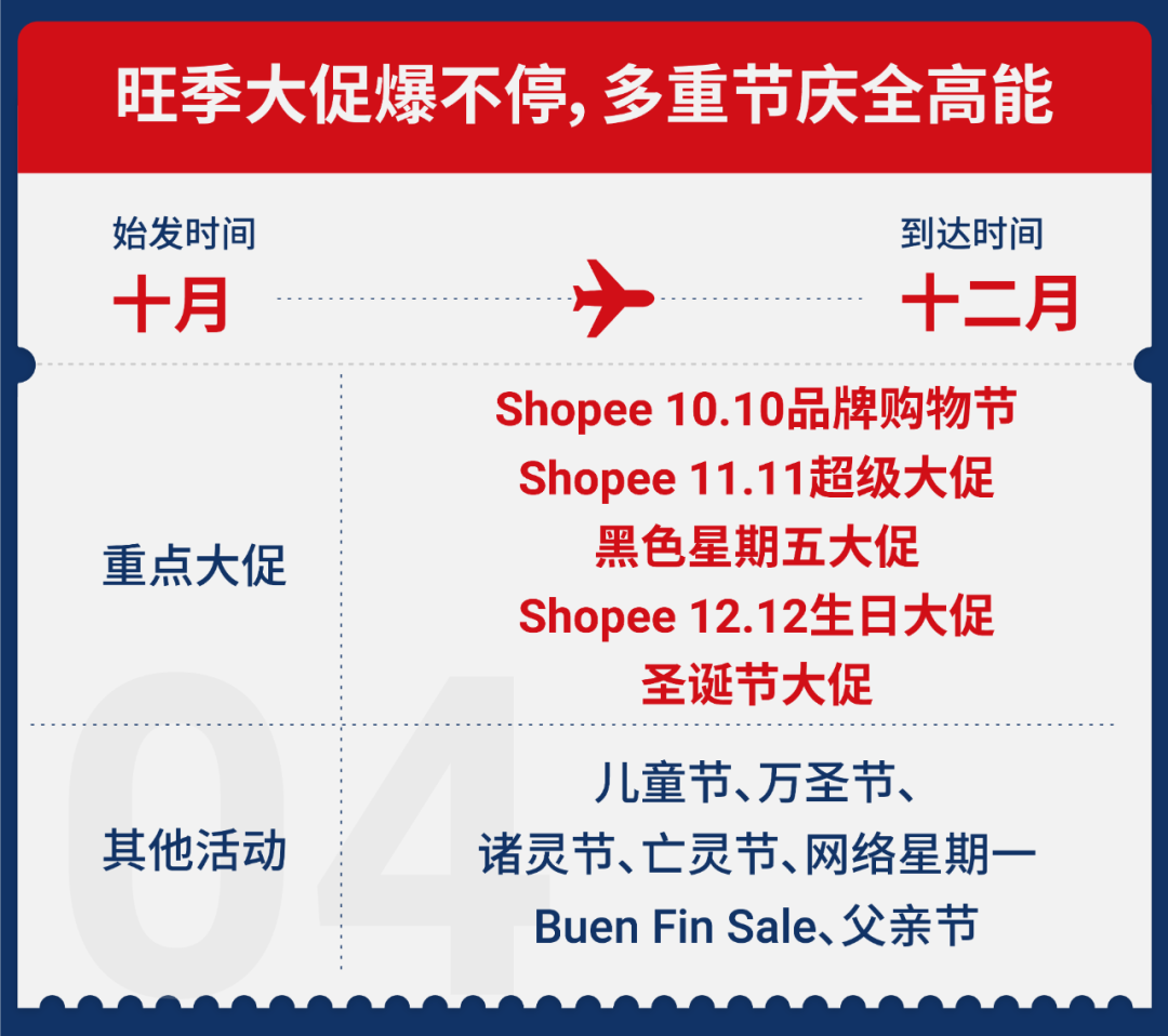 条条大路通“爆单”,本次航班第四站更是全程高能,机遇不断!Shopee旺季大促强强联手,各类促销活动疯狂引流,倾情打造全市场狂欢爆单新纪元!年终购物盛会满满商机,卖家可冲刺业绩再创营收新高,赚得盆满钵满赢旺季!