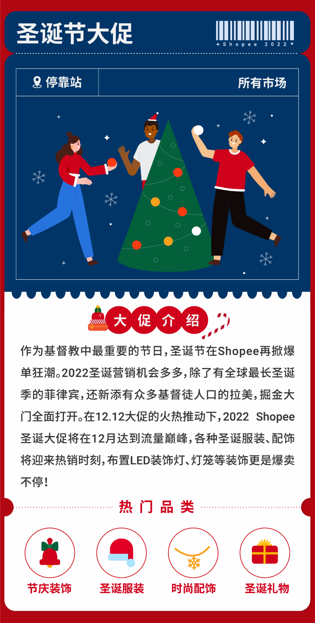 本次航班第一站从1月拉开序幕,Shopee以东南亚春节大促和巴西狂欢节大促等火热活动嗨翻全场,开局即“王炸”,2022一整年的爆单好运从此打开!爆单航班已启程,赶快下拉查看各停靠站的大促热卖机会点吧!