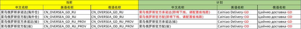 2、以下2条物流线路:“菜鸟俄罗斯承诺达(海外仓)”和“菜鸟俄罗斯官方配(海外仓)”将于2022/1/31下线,商家需要将对应的线路替换成 “ 菜鸟俄罗斯官方承诺达(省)” 和 “菜鸟俄罗斯官方配(省)”