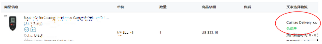 1、线路升级后,卖家在速卖通卖家后台查看订单详情 - 买家选择物流 将会展示成 Cainiao Delivery-OD/Cainiao Delivery-GD 字样,如下图