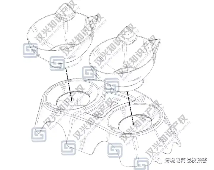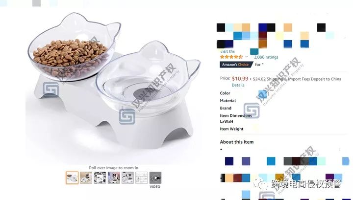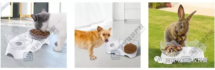 P.S.仔细看,这款猫粮碗与该外观专利除了侧面底座部分有一定区分外,其他部分是一致的, 整体的话是构成侵权的!所以如果有需要跟进销售相关产品的卖家最好是避开这款外观!除非大改,不然很难避开。