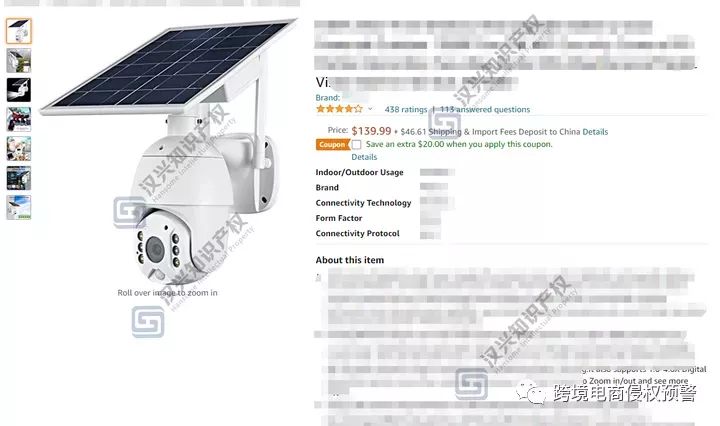 P.S. 综上。鉴于这款太阳能监控摄像头已经有了外观专利,所以有在美国站销售相关产品的卖家,应注意规避,以防侵权!