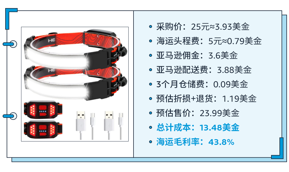 吸取了上一个选品的失败教训后,我想选这个两件起售的小型头戴灯,我了解到国外的消费者都比较喜欢户外运动或露营,小型头戴灯可以戴在头上方便进行活动,这个选品应该可以成功!