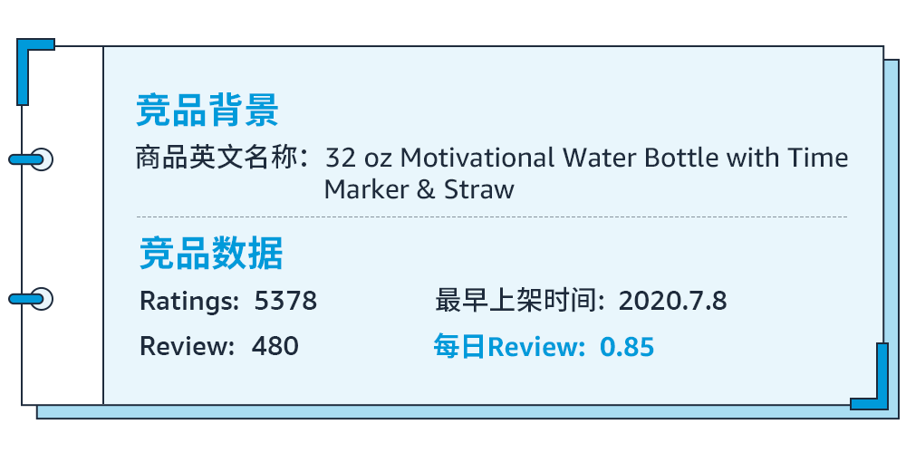 在找到热销竞品后,我们可以评估热销竞品的销量,这些数据可以帮助新手卖家简单评估及了解市场需求。卖家可以通过下图的 Ratings(星级评定)、Review(评论)、最早上架时间来推测竞品的每日 Review。该水杯上架时间为2020年7月8日,至今564天,Review 总量达到480条。得出该竞品的每日 Review 为0.85。而在亚马逊上售卖的商品,每一个对标的 ASIN 都有一个公布的数据即留评率,也就是留下 Review 的频率。在亚马逊上的留评率为1%-3%,如果每日 Review 为0.85,以1%为例,可以评估出该竞品每日的销量大概在85个左右。