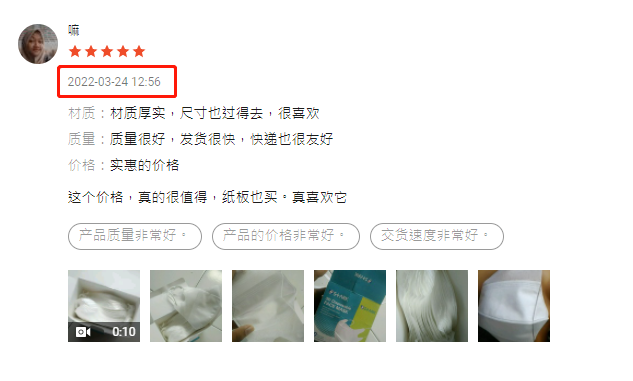 该口罩的评价中,最近的一次好评是在3-24,由此可见,口罩是持续i性的需求产品,不用担心季节性,或者是受众群等问题。