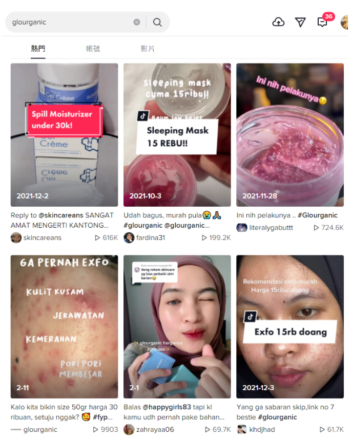 在 TikTok上搜索品牌名称,可以看到从 2021 年至今,有不同的达人在宣传展示产品。