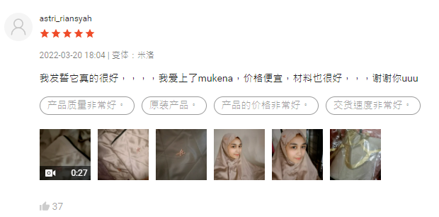 该售卖链接的评价最近一次好评是3-20,斋月期间,穆斯林人群会购买新的穆斯林服饰。
