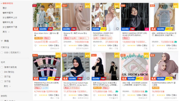 shopee上已经制定了穆斯林服饰的专区,收录大部分做穆斯林服饰的品牌。