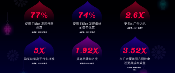 TikTok提供了斋月期间,品牌在其上进行了斋月和开斋节营销的一些关键数据: