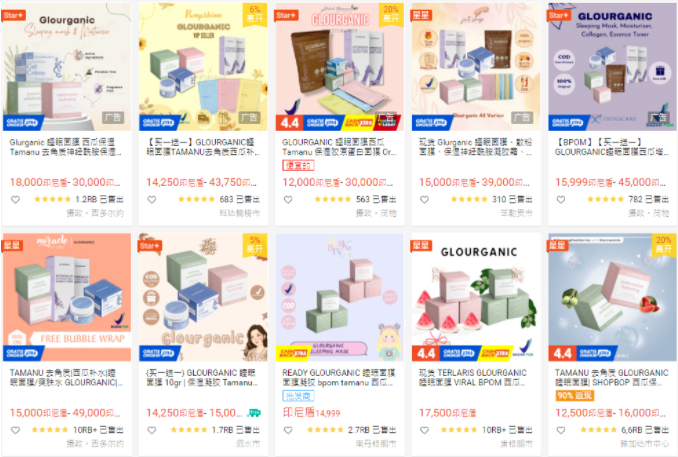 品牌glouric在shopee有很多卖家在销售,价格在1200印尼盾左右,目前,最多的销售10RB。