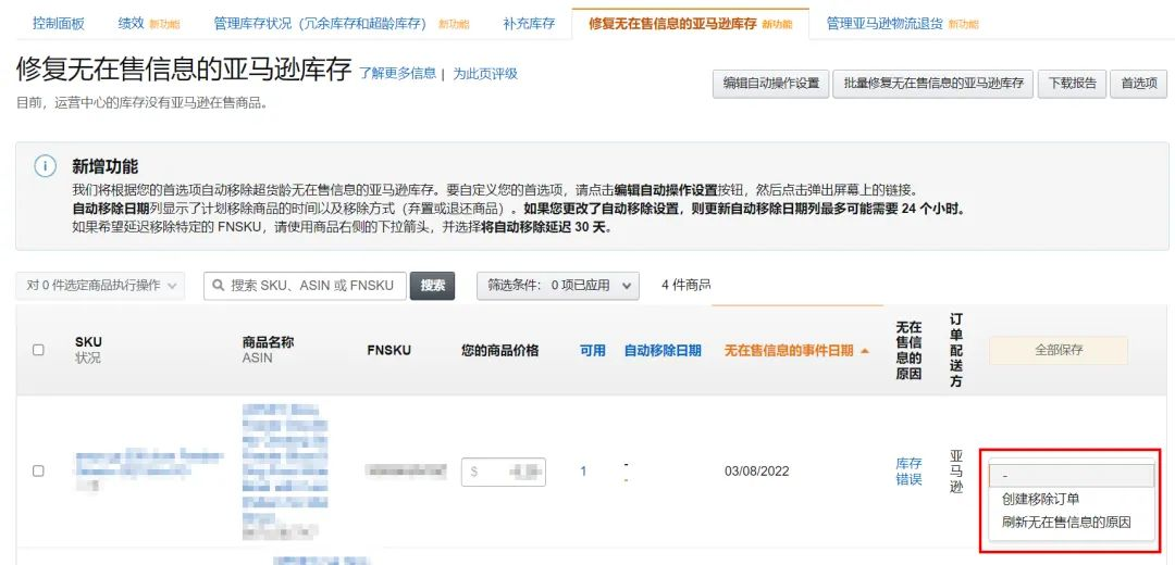 🔍 您可以复制以下链接至浏览器前往“修复无在售信息的亚马逊库存”页面: