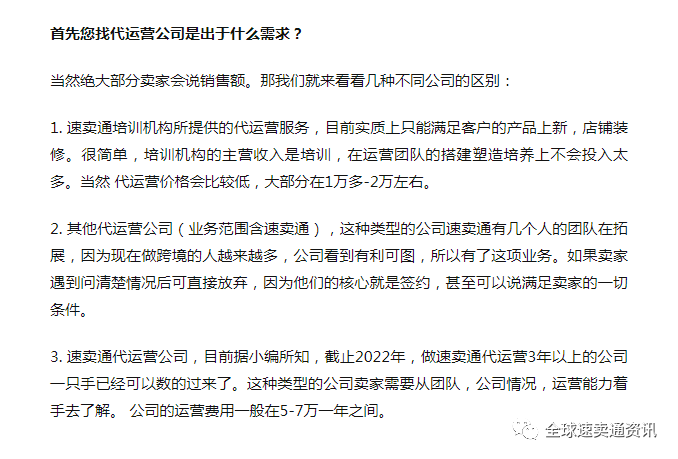 运营服务公司:1.速卖通培训机构(接受代运营客户) 2.速卖通代运营公司 3.其他代运营公司(业务范围包含速卖通)