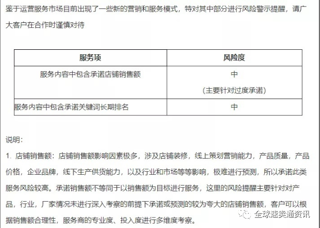 最后,选择代运营失败的有很大一部分卖家是心理的原因,作为付钱的人肯定是希望得到保障,但是往往因为满足自己的保障心理而忽略了客观情况,最终因为不靠谱或者不对口的公司的承诺选择错了。附上一张阿里集团很早就公布的服务商公告: