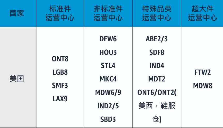 以下是支持锁仓的欧洲站、美国站、日本站的亚马逊运营中心: