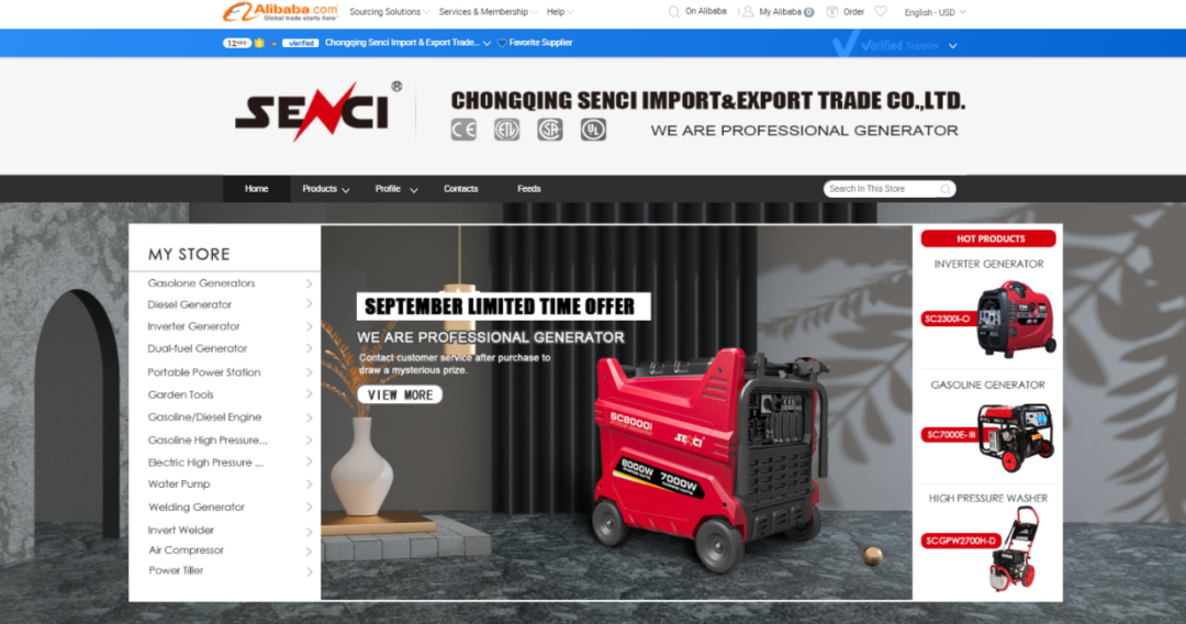 重庆的神驰机电是全球小型发电机领导者,从做配套零部件起家,并不断向终端产品转型。同时,神驰机电也从OEM贴牌生产逐步转向主动打造自主品牌,争取更大话语权,大力布局海外市场。阿里国际站为其提供了一条线上品牌出海的新通道。