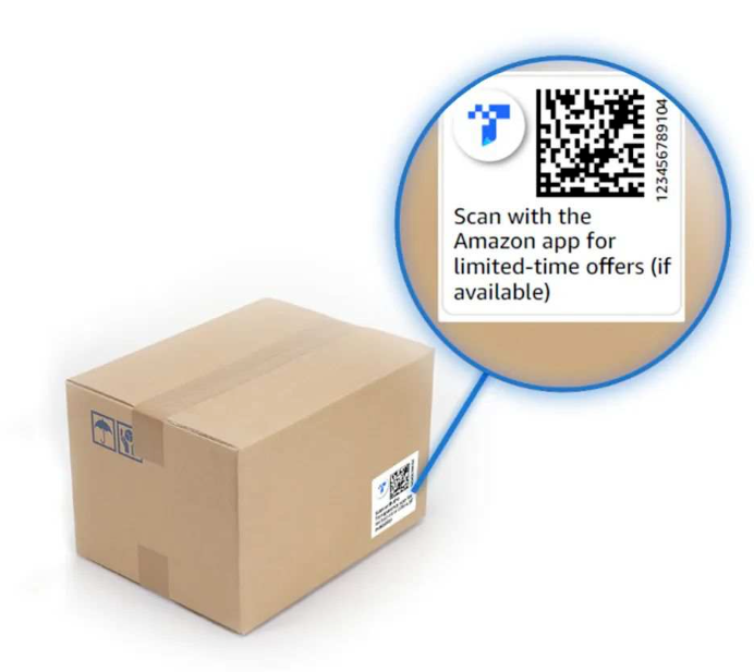 在产品外包装上,加入亚马逊透明计划的卖家,会有一张贴上透明计划logo的标签。
