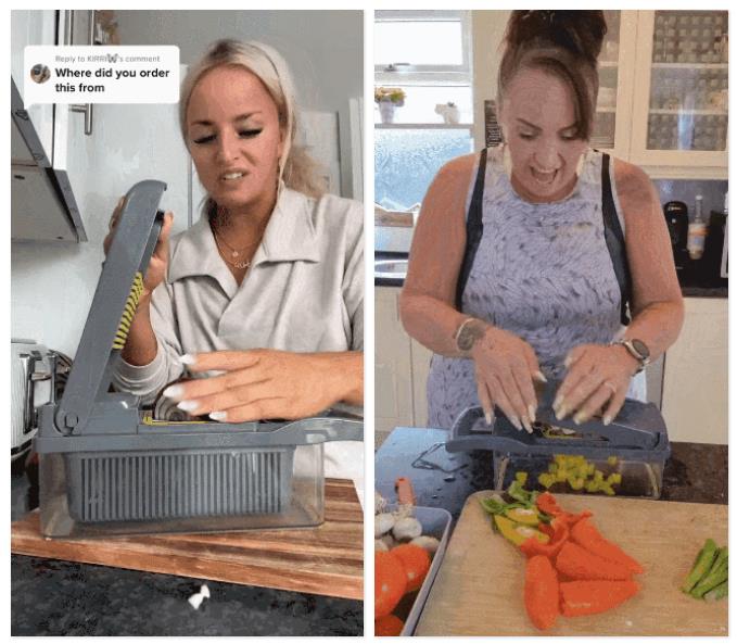 从产品来看,12 in 1 Vegetable Chopper 这款12合1的多功能切菜器可以快速轻松地将水果或蔬菜切成均匀的切片, 非常适合切割各种形状和尺寸的番茄、胡萝卜等,轻松灵活,还具备耐用、易清洁等特点。