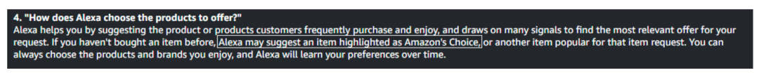 如今,Amazon's Choice标志不仅仅是简化语音搜索产品的简单标签。该标志现在能帮助客户在购物搜索时节约时间,亚马逊平台会根据客户的购买记录、收藏记录、搜索记录,把部分优质好价的产品标注上Amazon's Choice,依次推荐商品给消费者。