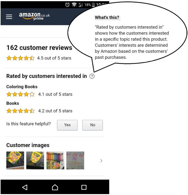 亚马逊英国站上多了一个新功能,当你查看某一商品时,会发现商品的review可以根据留评买家兴趣进行分类。