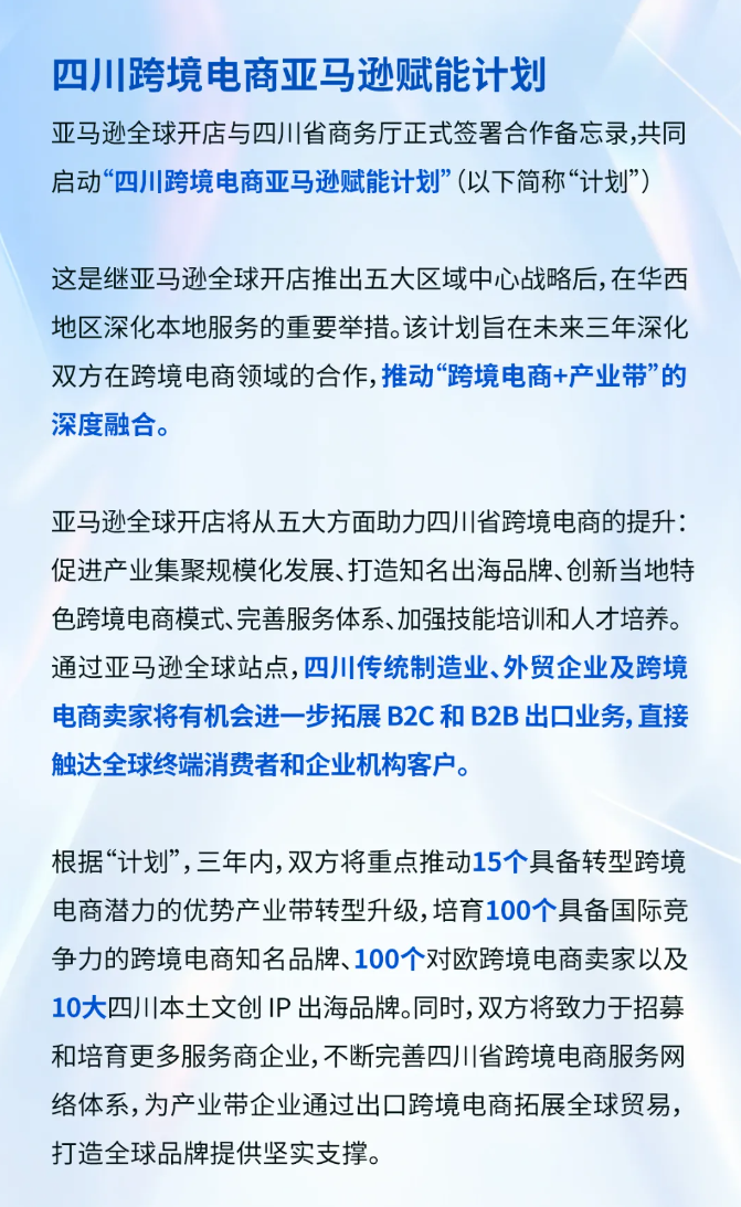 亚马逊全球开店与四川省商务厅共同揭幕三年赋能新篇章!