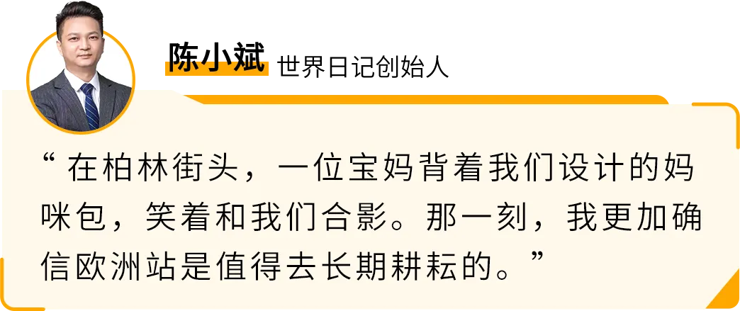 2020年,已冲上国内某电商平台妈咪包类目TOP1的陈小斌,做出了一个令业内震惊的决定——关闭了世界日记在国内的最后一家电商店铺,全面转型亚马逊跨境业务。在他看来,虽然海外用户对产品的品质要求更加严苛,成本压力也较大,但欧洲存在着令人惊喜的价值洼地,尤其是箱包等品类的天花板更高。基于这样精准的商业洞察,陈小斌毅然选择All IN亚马逊。
