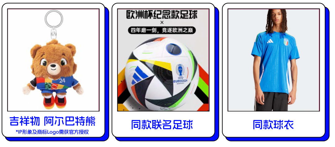 IP作为近年来国内外各大品牌的重要商业资产之一,其产生极高的话题热度与流量,也使得品牌自身充满源源不断的生命力;早在去年夏季,欧足联就宣布了这只名为“阿尔巴特”的可爱的泰迪熊,成为2024欧洲杯吉祥物,在世界范围内受到广大体育爱好者的喜爱。商家朋友在获取官方商标授权后,可以针对热门IP进行钥匙扣、冰箱贴、徽章等周边产品的开发与设计,搭上这趟“网红IP”的超速车。