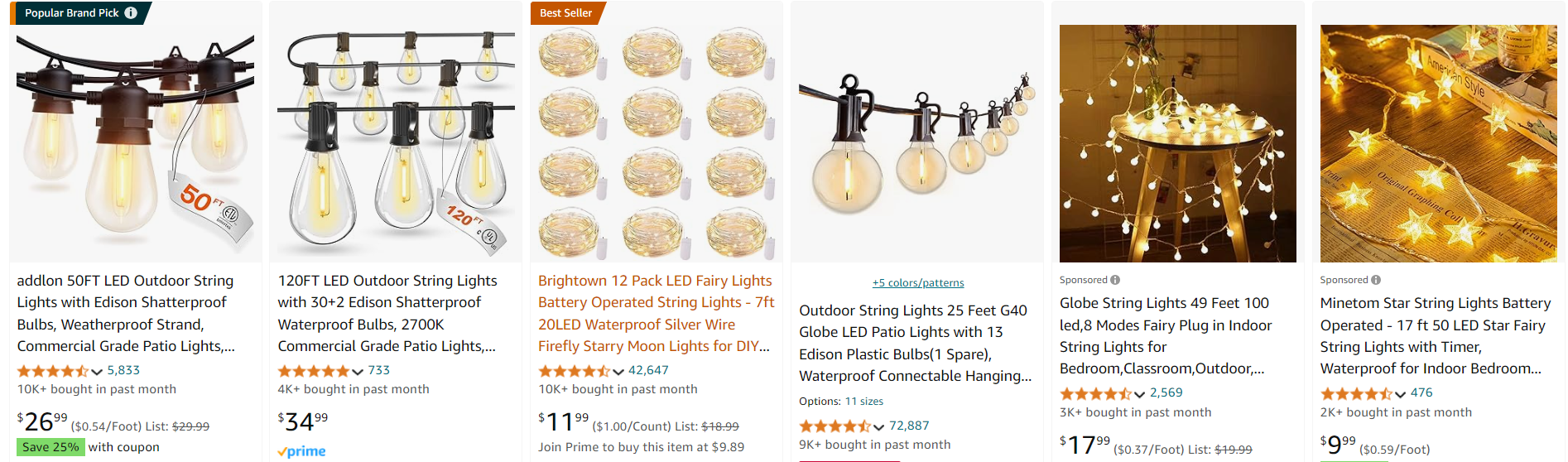 灯串是节日必备产品,深得消费者青睐。亚马逊上的灯串产品很多,热卖的不在少数,留评破万、冲上Best seller榜单的产品都有。