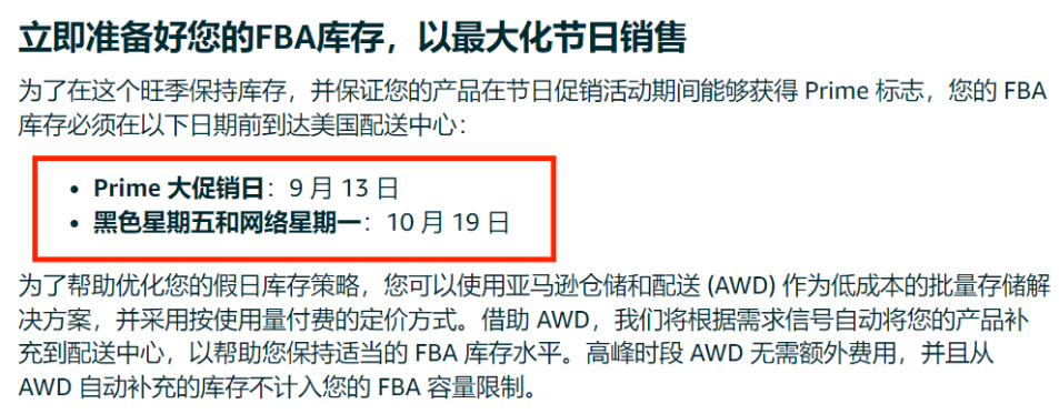 亚马逊最近公布了秋季Prime会员日及黑色星期五网一的FBA库存截止入仓日期。