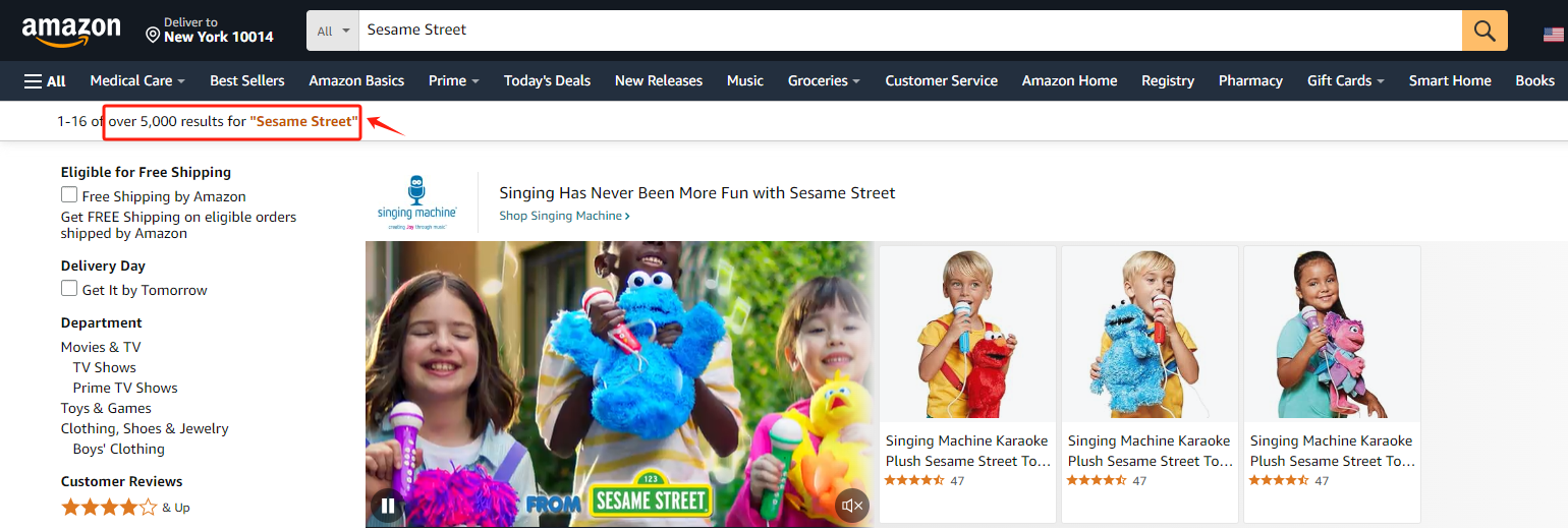 Sesame Street芝麻街是全球知名的儿童教育节目,开播后俘获大批粉丝芳心,被称为美国电视史上的经典之作。如此IP必定有不少周边产品在售,亚马逊上有超5000+相关listing。