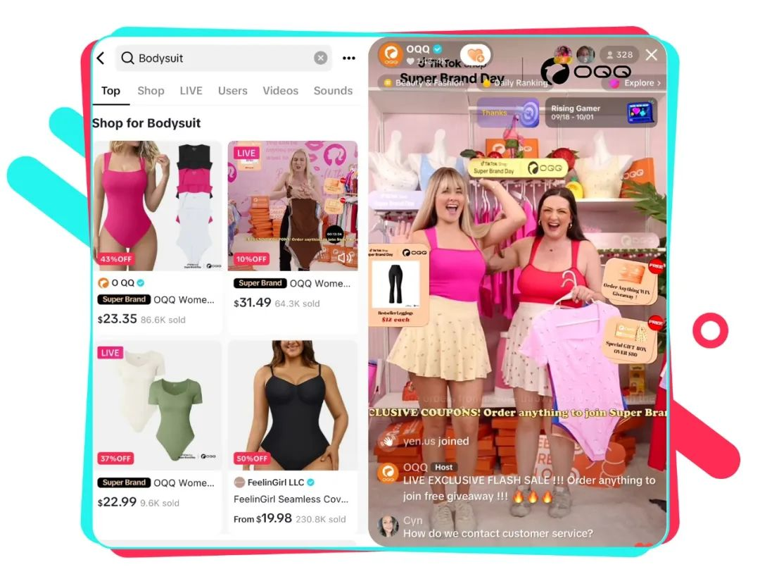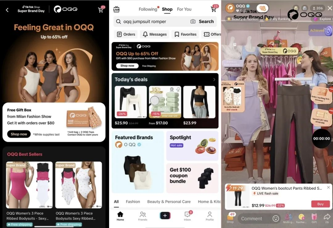 从日常到秀款的品牌升级。超品日期间,OQQ举办了自己的米兰时装秀,秀款新品均在TikTok Shop上首发。通过TikTok上的短视频、直播等形式,消费者迅速看到和了解新款的设计、大促的优惠,直接转化成了销量。