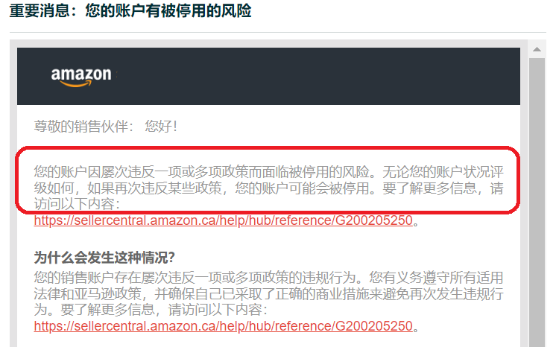 据悉,一旦违规次数达到上限,不仅账户会被标记为严重违规,账户状况评级分数也会降至0分。同时,亚马逊会邮件通知卖家将有3天宽限期来解决重复违规问题,若能成功解决则不会被封号,反之账号会被停用,直至申诉成功。