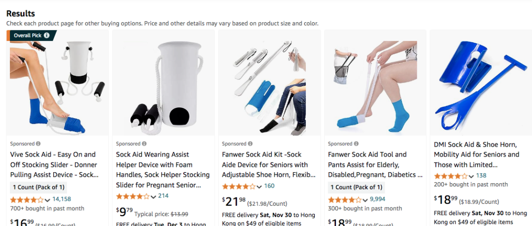 在亚马逊美国站上,与不少卖家在销售穿袜辅助器,建议卖家排查是否有侵权风险,如未获得授权,建议尽快下架。