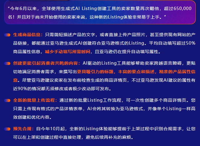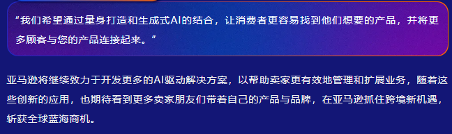 在利用生成式人工智能的力量优化顾客购物体验的同时,提升卖家朋友们的销售体验同等重要,所以亚马逊在峰会中,带来了专为卖家服务的人工智能助手Amelia,还有多项AI驱动的运营利器!