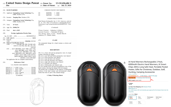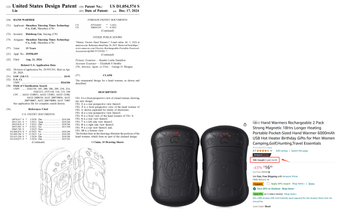 众所周知,侵权是亚马逊不可触碰的红线,轻则下架listing重则移除销售权限。近期有大批美国外观专利下证,稍不留神就会踩雷,这其中就包括月销10000+的暖手宝!