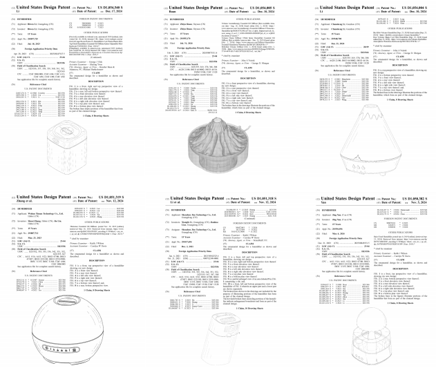 光是近2个月下证的加湿器外观专利就不少,有卖相关产品的需小心: