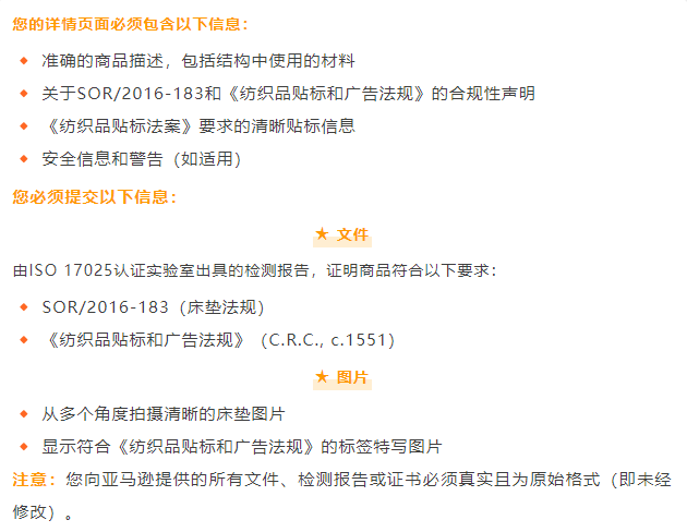 亚马逊要求所有成人床垫均经过检测并符合下列法规、标准和要求: