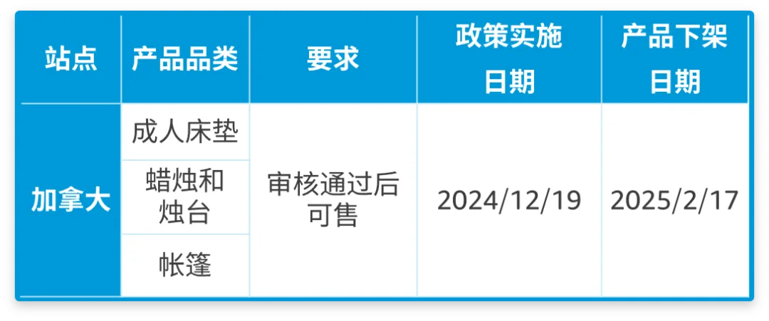 近期,不少亚马逊加拿大站点的卖家陆续收到了亚马逊合规政策要求邮件,对于“成人床垫”、“蜡烛和烛台”以及“帐篷”品类合规要求有更新,请您及时关注!